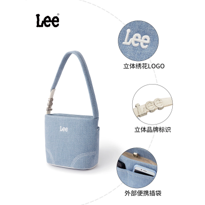 Lee摩登水洗丹宁手提包女大容量通勤轻便水桶包休闲时尚单肩包